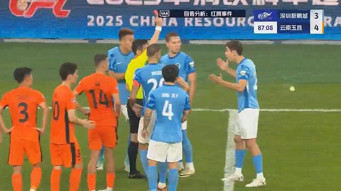 03月28日訊 中超第3輪,深圳新鵬城vs云南玉昆。比賽第86分鐘,在李松益烏龍球讓深圳新鵬城扳回一球后,拜合拉木撿球時(shí)與云南玉昆球員發(fā)生沖突,揮拳擊打到對(duì)方球員。在VAR介入后,李松益被出示黃牌,拜合拉木被直紅罰下,此時(shí)距離拜合拉木第80分鐘替補(bǔ)登場(chǎng),僅過去了6分鐘。 本文標(biāo)簽: 足球 中超 中國(guó)足球 深圳新鵬城 云南玉昆