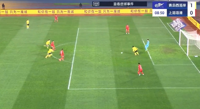 海港后防被斷再次丟球!第19分鐘,西海岸前場繼續高位逼搶,戴維森左路斷球后傳中,阿齊茲禁區內轉身掃射破門,青島西海岸2-0上海海港!↓