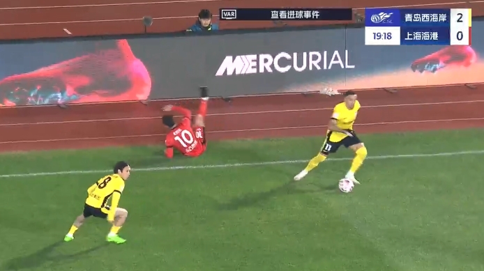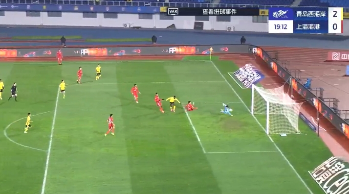 19歲李新翔一線隊處子球!海港扳回一城!第25分鐘,李新翔單挑防線內切擺脫張呈棟后射門,皮球打在里切利腿上折射入網,門將李昊反應不及,青島西海岸2-1上海海港!↓