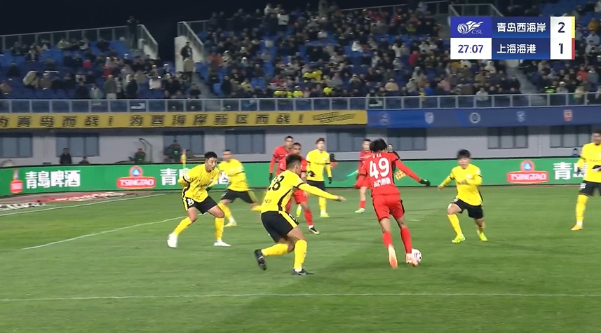 上半場比賽結束,上海海港客場暫時1-3落后青島西海岸。