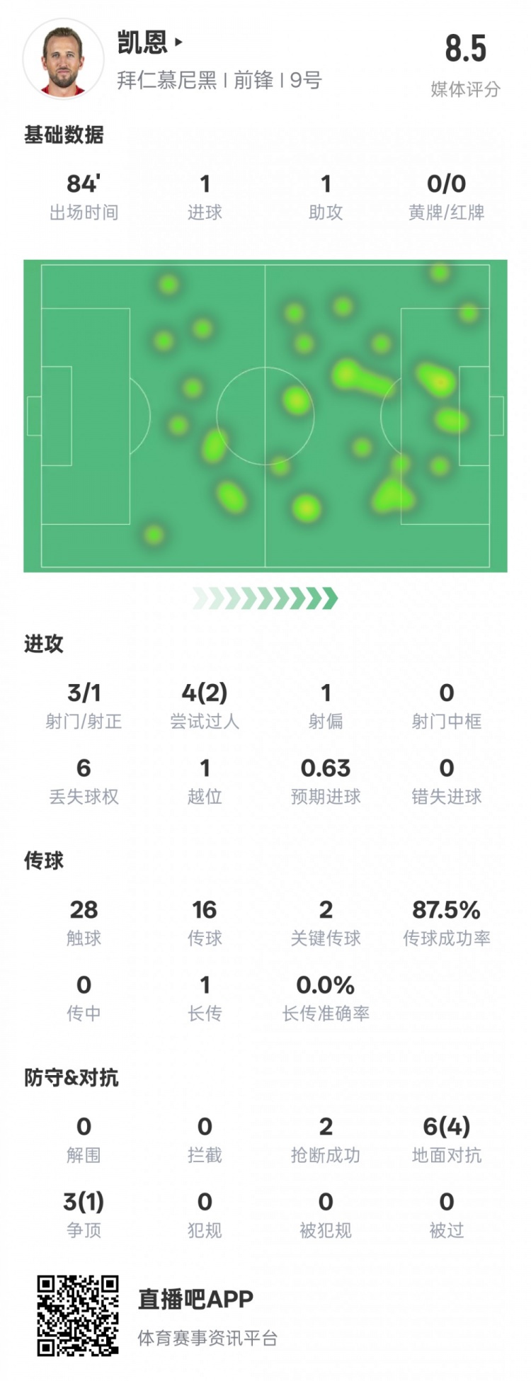 3月30日訊 德甲第27輪,拜仁對陣圣保利,凱恩首發(fā)出戰(zhàn),傳射建功,還送出2次關(guān)鍵傳球,評分8.5。凱恩本場比賽數(shù)據(jù)如下:進(jìn)球1助攻1射門3射正1過人4過人成功2射偏1丟失球權(quán)6越位1觸球28傳球16關(guān)鍵傳球2傳球成功率87.5%長傳1長傳準(zhǔn)確率0%搶斷2地面對抗6地面對抗成功4爭頂3爭頂成功1 本文標(biāo)簽: 足球 德甲 拜仁慕尼黑 凱恩