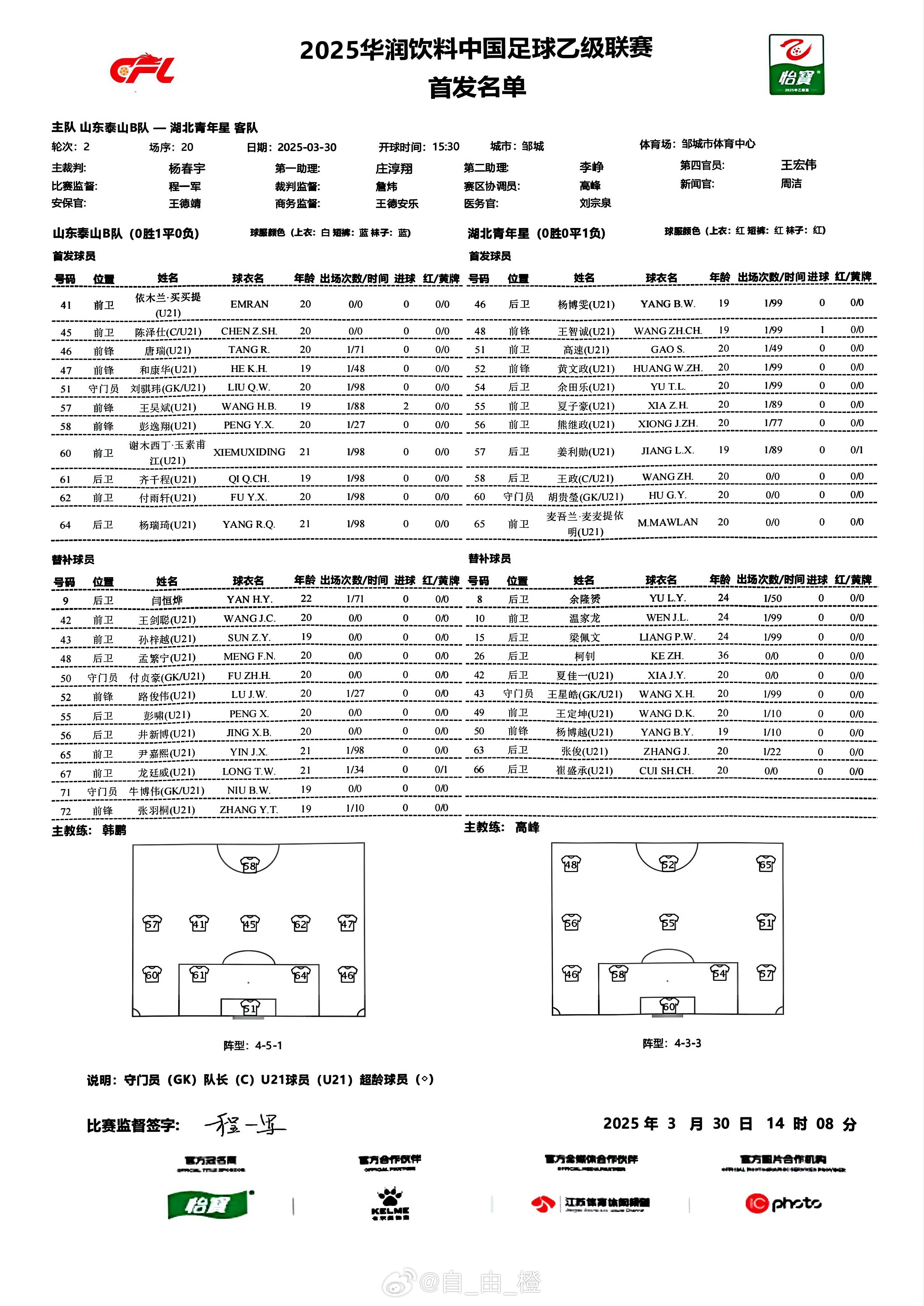 03月30日訊 今日下午進(jìn)行的中乙第2輪比賽,山東泰山B隊(duì)vs湖北青年星,依木蘭、陳澤仕先發(fā),因年齡造假被禁賽3個(gè)月的謝木西丁解禁復(fù)出后繼續(xù)首發(fā)。 本文標(biāo)簽: 足球 中超 中國足球 山東泰山