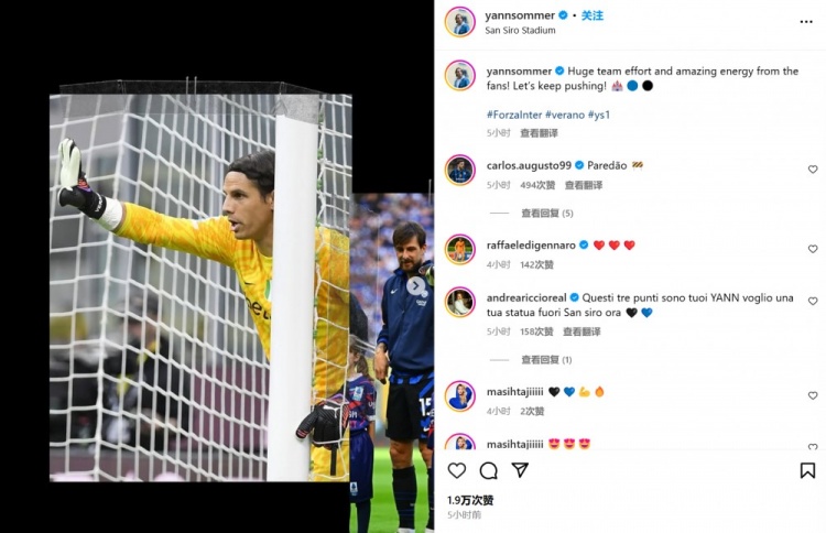3月31日訊 國米在本輪意甲2-1險勝烏迪內斯,索默在下半場作出了多次關鍵撲救。第74分鐘,烏迪內斯左路傳中,禁區內盧卡無人盯防頭球攻門,索默做出神仙撲救。第90+2分鐘,烏迪內斯左路角球開出,后點近距離的射門被索默神撲救險。他也在賽后通過社媒曬出自己的比賽照紀念,并配文:“全隊做出了巨大努力,球迷們也提供了令人難以置信的支持!讓我們繼續前進!??????????” 本文標簽: 足球 意甲 國際米蘭 烏迪內斯