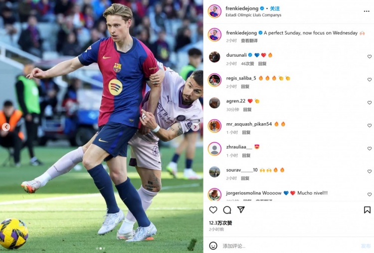 3月31日訊 巴薩在本輪西甲4-1擊敗赫羅納,德容本場送出助攻,表現更是獲得了球迷一致認可。第77分鐘,德容轉身擺脫長距離帶球推進,隨后斜塞到禁區左側,萊萬調整后低射破門。德容也在今日通過社媒曬出比賽照紀念勝利,并配文:“一個完美的周日,接下來專注于周三。”巴薩將在當地時間周三于國王杯半決賽次回合客場再戰馬競,雙方首回合戰成4-4平。 本文標簽: 足球 西甲 巴塞羅那 赫羅納 馬德里競技