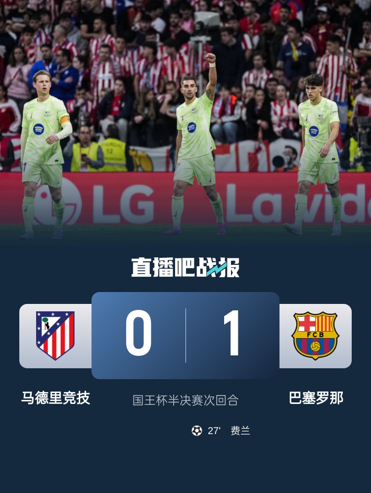 費蘭制勝,巴薩客場1-0戰勝馬競,總比分5-4淘汰馬競進軍國王杯決賽,將對陣皇馬。