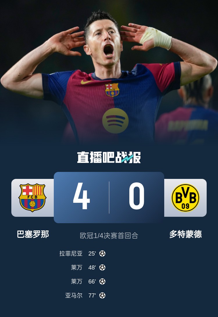 04月10日訊 歐冠1/4決賽首回合,巴塞羅那坐鎮主場4-0大勝多特蒙德。多特次回合想要逆轉幾乎不可能。巴薩本賽季只有3次單場丟過4球,但是紅藍軍團的鋒線更加夸張,這3場比賽他們至少打進了2球,其中還有4球5球的戰績:巴薩2-4奧薩蘇納,巴薩4-4馬競,巴薩5-4本菲卡。 本文標簽: 足球 德甲 多特蒙德 西甲 巴塞羅那 歐冠