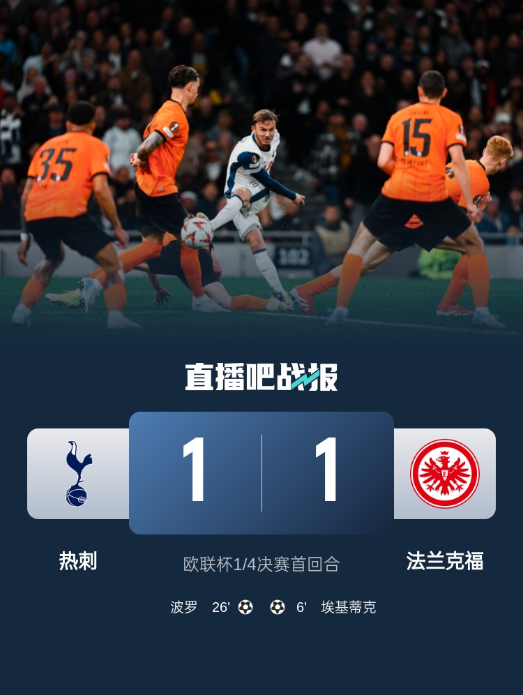 歐聯-熱刺兩中框首回合1-1法蘭克福 ?;倏似崎T波羅扳平