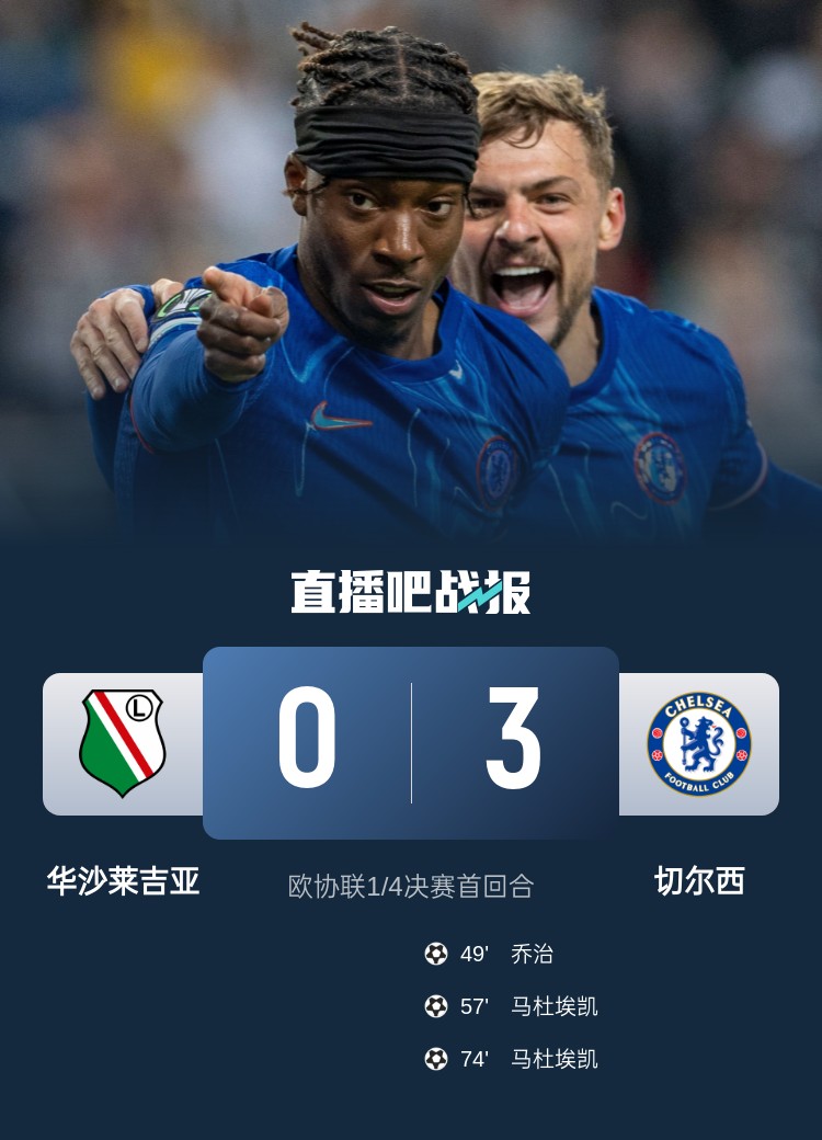 馬杜埃凱梅開二度,桑喬2助,切爾西客場3-0戰勝華沙萊吉亞。