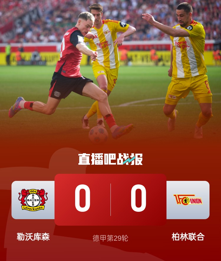 德甲第29輪,勒沃庫森0-0悶平柏林聯合。