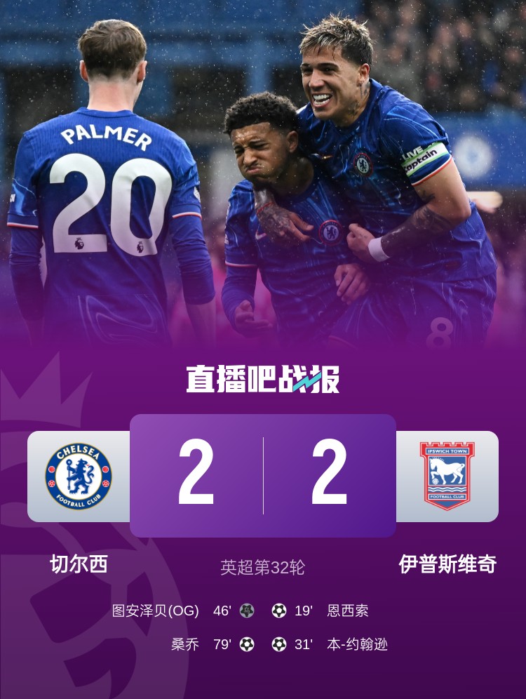 桑喬圓月彎刀,切爾西2-2伊普斯維奇。