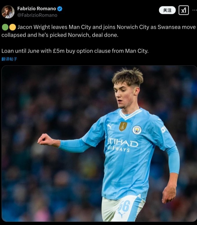 2月4日訊 名記羅馬諾消息,19歲曼城小將雅各布-賴特(注:此處羅馬諾將球員名誤打為Jacon Wright)將租借加盟諾維奇,轉會已經敲定。羅馬諾在社媒寫道:“盡管加盟斯旺西的談判破裂,不過雅各布-賴特依舊將離開曼城,球員選擇租借加盟到諾維奇效力。租期到今年6月止,合約中附帶500萬鎊選擇買斷條款。”雅各布-賴特出道于曼城青訓,目前在曼城U21效力,本賽季共出戰17場,打進6球助攻6次。 本文標簽: 足球 英超 曼城 越南 五洲 轉會