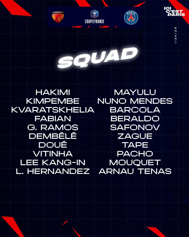 2月4日訊 北京時間明天凌晨,巴黎將在法國杯1/8決賽中對陣勒芒,巴黎公布了此役的球員名單,登貝萊、克瓦拉茨赫利亞在列,馬爾基尼奧斯、若昂-內維斯、扎伊爾-埃梅里缺席。巴黎對勒芒大名單門將:薩福諾夫、特納斯、穆凱后衛:阿什拉夫、金彭貝、盧卡斯-埃爾南德斯、努諾-門德斯、貝拉爾多、扎格、帕喬中場:法比安-魯伊斯、維蒂尼亞、李剛仁、馬尤盧、塔佩前鋒:克瓦拉茨赫利亞、貢薩洛-拉莫斯、登貝萊、杜埃、巴爾科拉 本文標簽: 足球 法甲 巴黎圣日耳曼