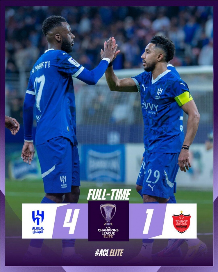 亞冠精英聯(lián)賽西亞區(qū)第7輪,利雅得新月4-1擊敗波斯波利斯。上半場(chǎng),馬爾科姆超級(jí)一條龍破門(mén),坎塞洛擴(kuò)大優(yōu)勢(shì),多薩里連進(jìn)兩球。下半場(chǎng),布萊希送點(diǎn),格維勒西亞尼點(diǎn)射扳回一球。