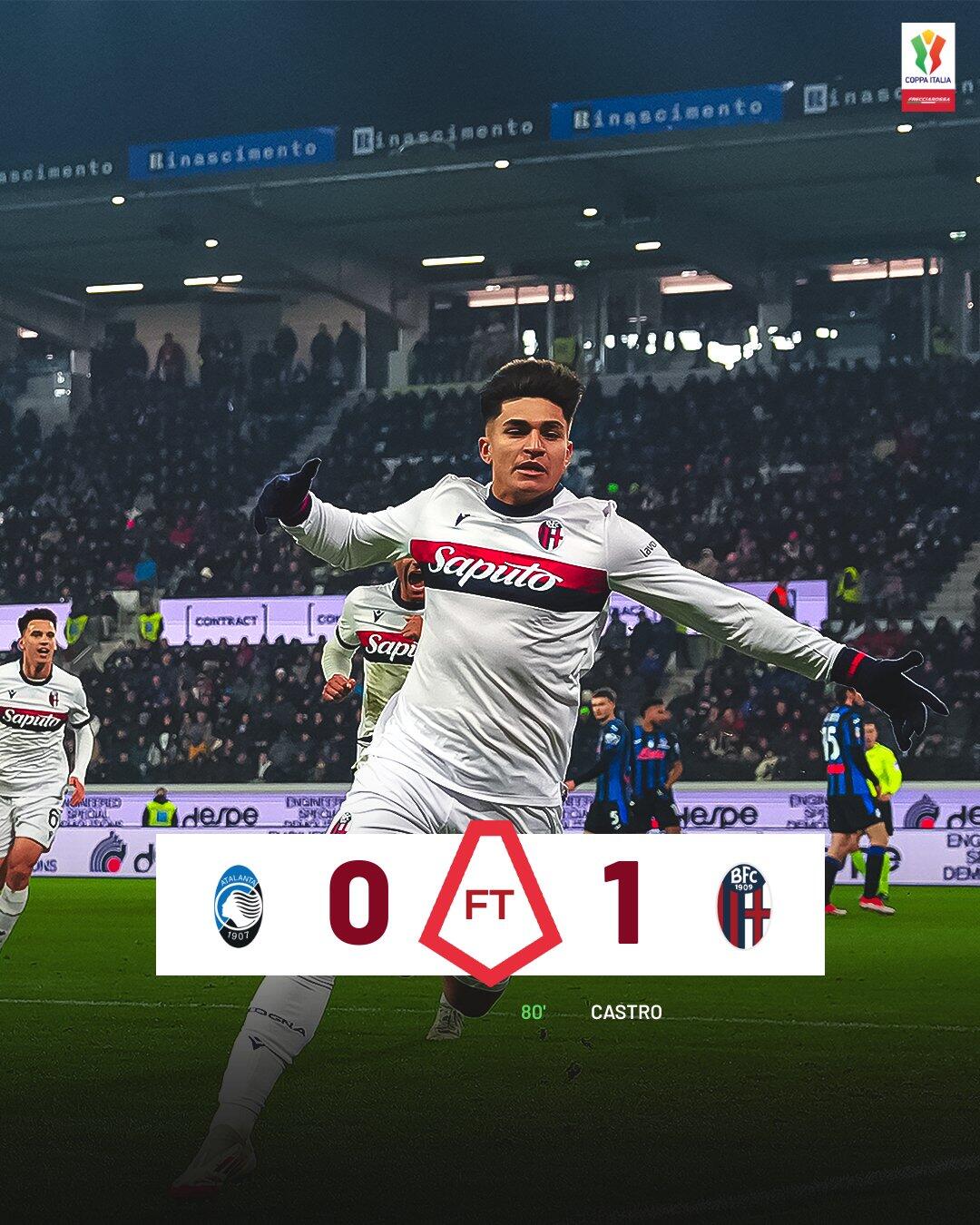 意大利杯1/4決賽,博洛尼亞1-0擊敗亞特蘭大晉級(jí)四強(qiáng)。上半場(chǎng),雙方均無(wú)建樹(shù);下半場(chǎng),直到第80分鐘,替補(bǔ)登場(chǎng)的卡斯特羅一擊制勝。