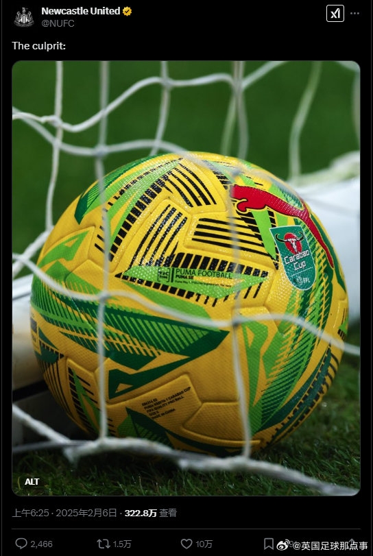 【官方玩梗】聯賽杯次回合紐卡2-0戰勝阿森納晉級決賽后,紐卡官推曬聯賽杯用球,配文:罪魁禍首此前雙方首回合阿森納主場不敵紐卡,阿爾特塔賽后采訪稱聯賽杯比賽用球和英超比賽用球不太一樣 本文標簽: 足球 英超 阿森納 紐卡斯爾聯 轉載 阿爾特塔