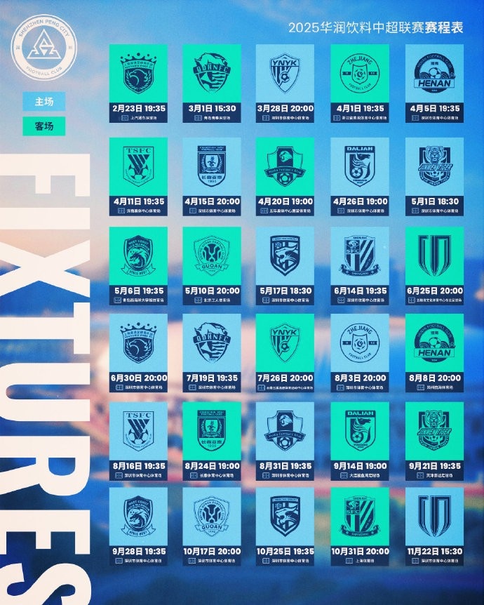 開局兩連客,深圳新鵬城2025賽季中超賽程表出爐!2025賽季,中超激戰再度啟幕!深圳新鵬城將迎來全新的挑戰,我們必將奮勇向前!??賽季首戰即將打響——2月23日 19:35,客場挑戰去年中超冠軍上海海港,開局即迎強敵!???????? 全新賽程表已正式出爐,各位球迷準備好與我們一起見證這充滿激情的一年了嗎?跟隨我們一起全力沖刺,為深圳新鵬城吶喊助威,拼搏每一場! 本文標簽: 足球 中超 中國足球 深圳新鵬城