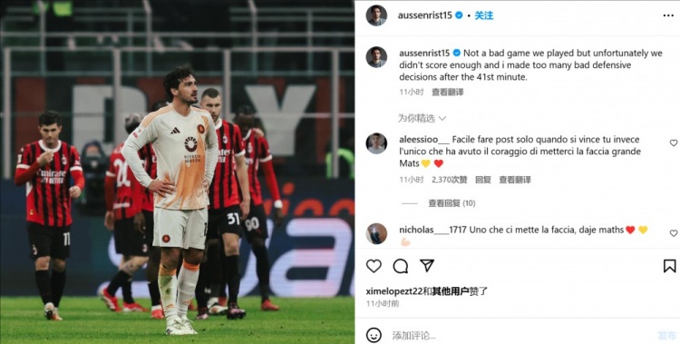2月7日訊 不久前,羅馬后衛(wèi)胡梅爾斯更新了社交媒體,總結(jié)了球隊(duì)輸給米蘭的問題。在此前結(jié)束的意大利杯1/4決賽中,羅馬客場1-3不敵米蘭遭到了淘汰。胡梅爾斯在社交媒體上寫道:“我們踢得還不錯,但不幸的是進(jìn)球不夠多。而且41分鐘后,我在防守上做出了太多錯誤的決定。” 本文標(biāo)簽: 足球 意甲 羅馬