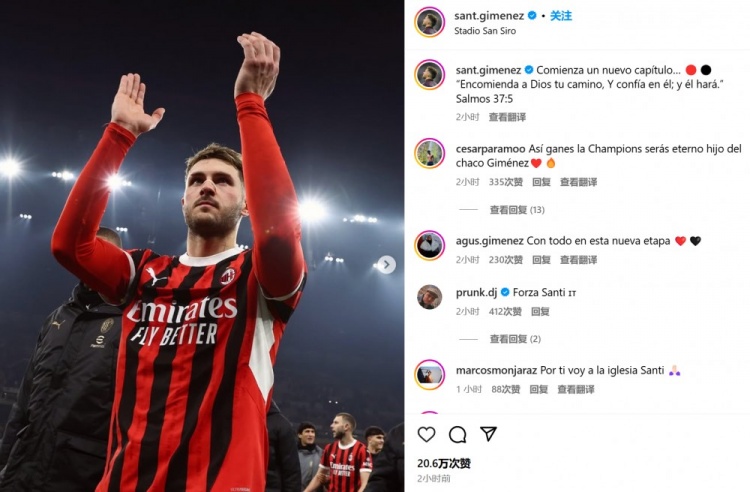 2月7日訊 米蘭在昨晚的意大利杯3-1淘汰羅馬,圣地亞哥-希門尼斯替補助攻菲利克斯破門。他也在今日通過社媒曬出自己的謝場照,并配文:“新的篇章開始了。”他同時還引用了《圣經》的內容:“‘將你的道路交托給上帝,并信靠他;他必為你成就’。(《詩篇》37:5)” 本文標簽: 足球 意甲 AC米蘭 羅馬