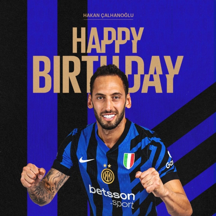 “本賽季,恰爾汗奧盧各項賽事出場23次,在意甲和歐冠聯賽中打進6球。現在俱樂部和全體藍黑軍團球迷祝賀你生日快樂!”