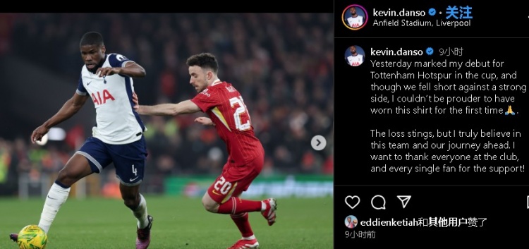 2月8日訊 英聯杯熱刺0-4利物浦,熱刺新援丹索首發登場。賽后,丹索更新社媒談到比賽。丹索社媒昨天是我首次為熱刺出戰杯賽,盡管我們輸給了一支強大的對手,但能第一次穿上這件球衣,我感到無比自豪????。這場失利令人痛心,但我真心對這支球隊以及我們的未來有信心。我想感謝俱樂部的每一個人,以及每一位球迷的支持!繼續前進。熱刺加油! 本文標簽: 足球 英超 熱刺
