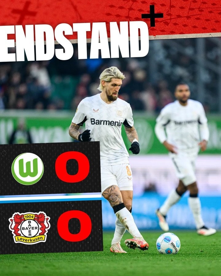 相比上一場比賽,勒沃庫森輪換8人,僅扎卡、若納坦-塔和穆基勒連場首發(fā),最終0-0戰(zhàn)平,已經(jīng)落后拜仁多達(dá)8分。