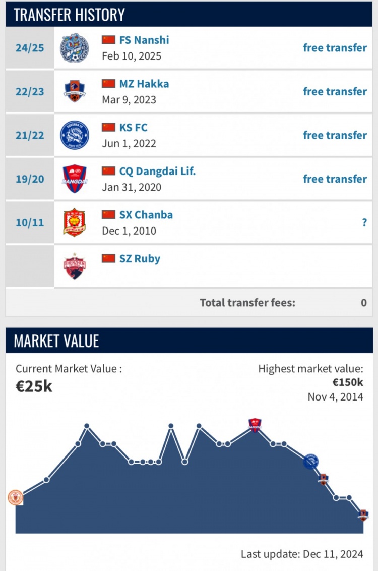 2月10日訊 根據德國轉會市場網站顯示,陳杰已經加盟佛山南獅。在德轉陳杰的個人頁面中,他已經于2月10日加盟佛山南獅,不過合同年限并未披露。本次陳杰屬于自由身轉會,因此佛山南獅無需支付轉會費用。現年35歲的陳杰,司職中場,曾效力深圳隊、北京人和、重慶兩江競技、昆山、梅州客家等隊。上賽季他代表梅州客家出場18次,其中10次首發,打入1球。 本文標簽: 足球 中超 中國足球 中甲 佛山南獅