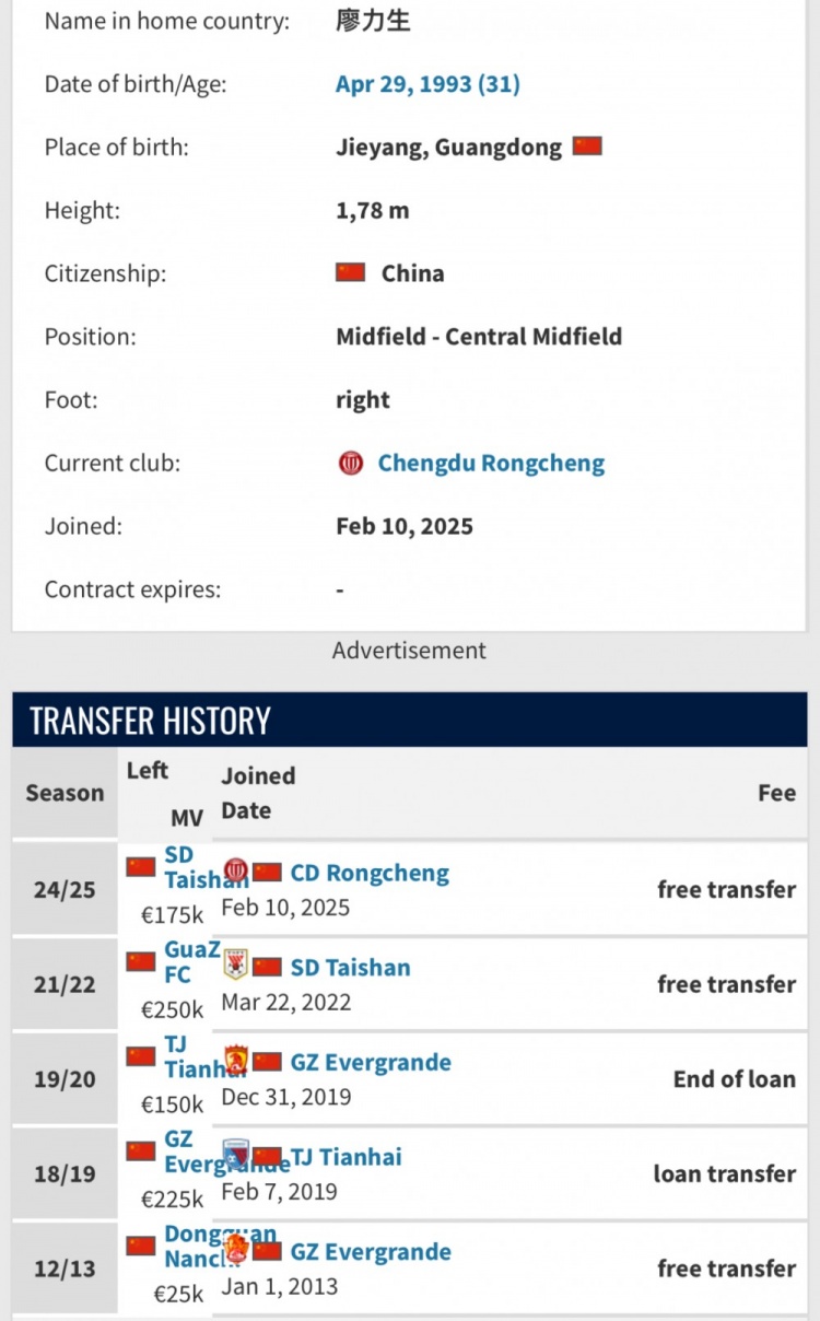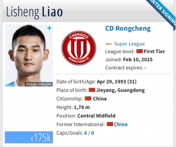 2月10日訊 根據德國轉會市場網站顯示,廖力生已經加盟成都蓉城。在德轉廖力生的個人頁面中,他已經于2月10日加盟成都蓉城,但合同年限并未披露。本次廖力生屬于自由身轉會,因此成都蓉城無需支付轉會費用。31歲的廖力生,2022年以自由身球員身份加盟泰山,共為泰山隊出場77次,打入7球并有7助攻。 本文標簽: 足球 中超 中國足球 成都蓉城