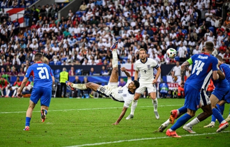 2024年歐洲杯英格蘭與斯洛伐克的1/8決賽上,貝林厄姆倒鉤破門(mén),那一刻,他和他偶像齊達(dá)內(nèi)一樣出眾的身體柔韌性、協(xié)調(diào)性展露無(wú)遺。