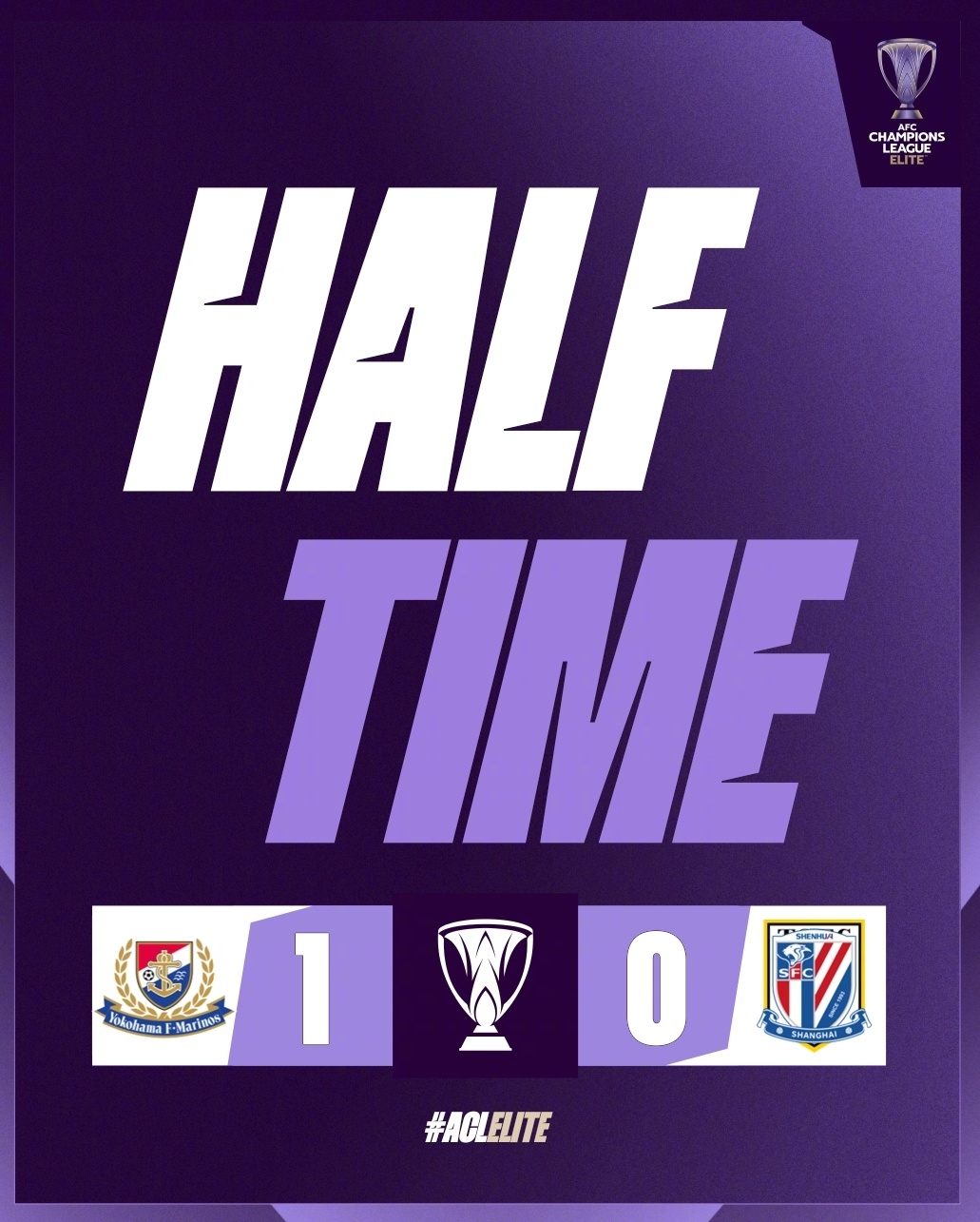 傷停補時2分鐘。上半場比賽結束,上海申花0-1橫濱水手。