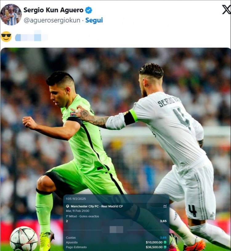 2月13日訊 在曼城2-3輸給皇馬的歐冠附加賽中,曼城名宿阿圭羅對(duì)比賽進(jìn)行了投注,他下注上半場(chǎng)以2粒進(jìn)球結(jié)束,最終曼城1-0領(lǐng)先皇馬結(jié)束了上半場(chǎng),阿圭羅也因此輸?shù)袅?萬(wàn)歐。