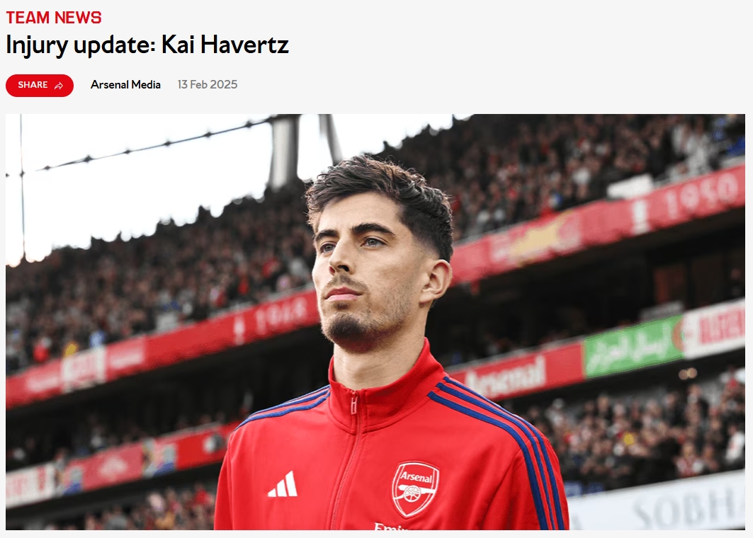 我們可以確認,凱-哈弗茨在上周迪拜集訓期間遭遇腘繩肌損傷。