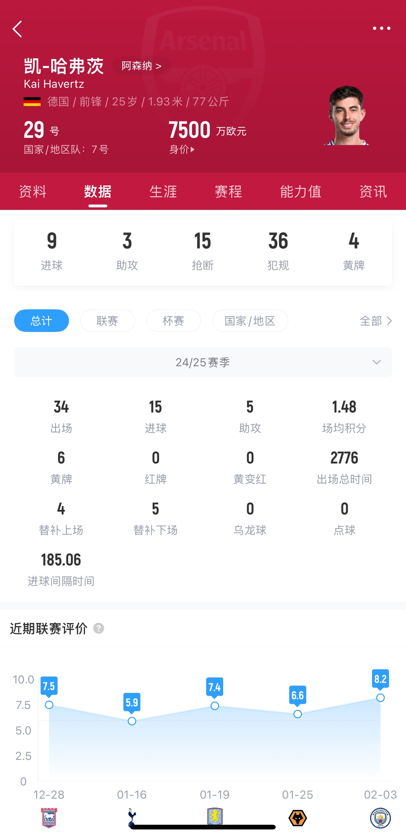 25歲的德國前鋒哈弗茨,本賽季代表阿森納出戰34場比賽,貢獻15粒進球和5次助攻。目前阿森納排名英超第2,落后榜首利物浦7分;歐冠聯賽階段阿森納排名第3,已經直通淘汰賽16強。